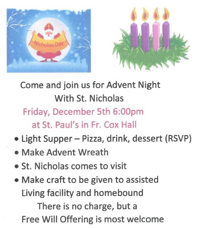 Advent Night - RSVP to Mary Beth at mbclowney@stpaulracine.org